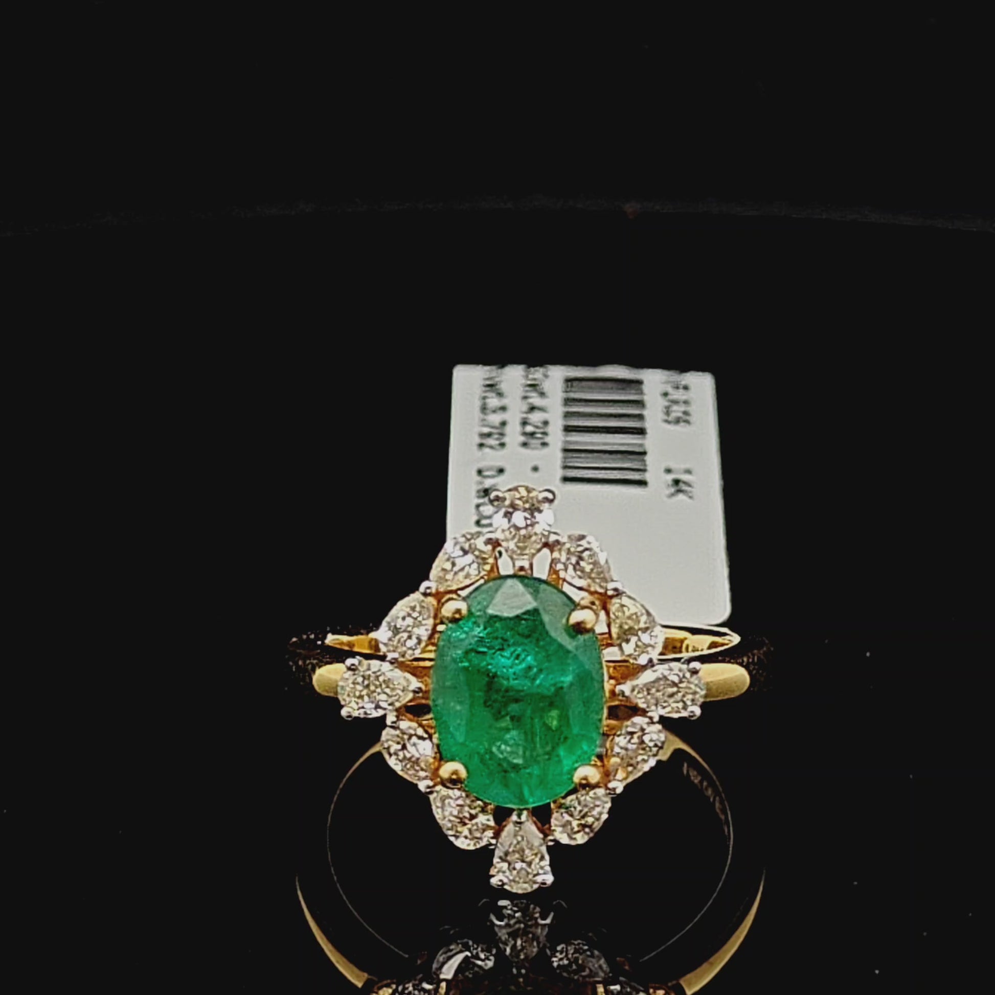 Oval Green Emerald Ring with Fancy Diamonds